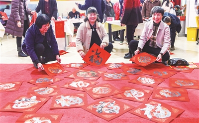 | 1月11日,迎新春送春联活动在宝盖镇宝源社区老年人活动中心举行。市老年书画研究会的12名书法爱好者为社区居民写春联,当场送出了400多副春联和100幅“福”贴。(记者 林智杰 颜华杰) |