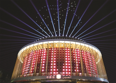 本届世博会中国国家馆名为“华夏之光”,主题是“构建人类命运共同体——创新和机遇”,重点展示中国在航天探索、信息技术、现代交通、人工智能、智慧生活等方面的成果,是中国与世界各国分享中国发展理念和发展成就、加强同世界各国交流合作、推动构建人类命运共同体的重要平台。截至10日,中国馆已累计接待各国嘉宾和游客超过80万人次,协助中国相关省区市、企业和合作单位举办活动28场。