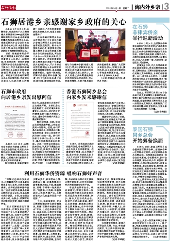 香港石狮同乡总会 向家乡发来感谢信
