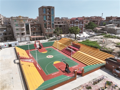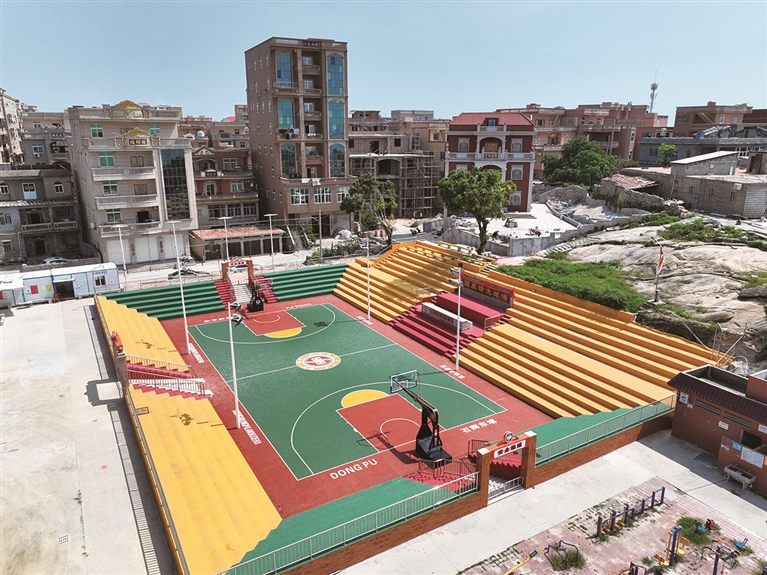 旅台同胞邱国泉先生捐资135万元兴建东埔一村国泉篮球场,提升改造为灯光篮球场,该工程占地1800平方米,对原本地面进行打磨整平,重新铺上全新的硅PV地胶,新增可同时容纳2000人以上的观赛看台,便于开展各项篮球赛事,进一步增强全民运动的浓厚氛围。 |