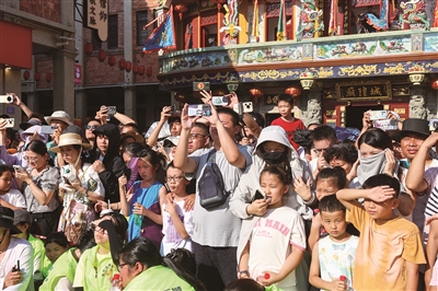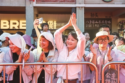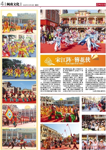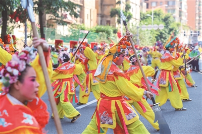 10月5日,石狮八卦街锣鼓喧天。泉州闽南文化戏剧周系列活动携升级版“宋江阵”惊艳亮相,以“固定点展示+行进式互动”打破传统舞台边界。108名演员化身“簪花侠士”,将闽南簪花的柔美与水浒英雄的豪气交融,引得游客蜂拥追逐,镜头与喝彩声交织,再现“棍棒手扑,妙绝天下”的民俗奇观。